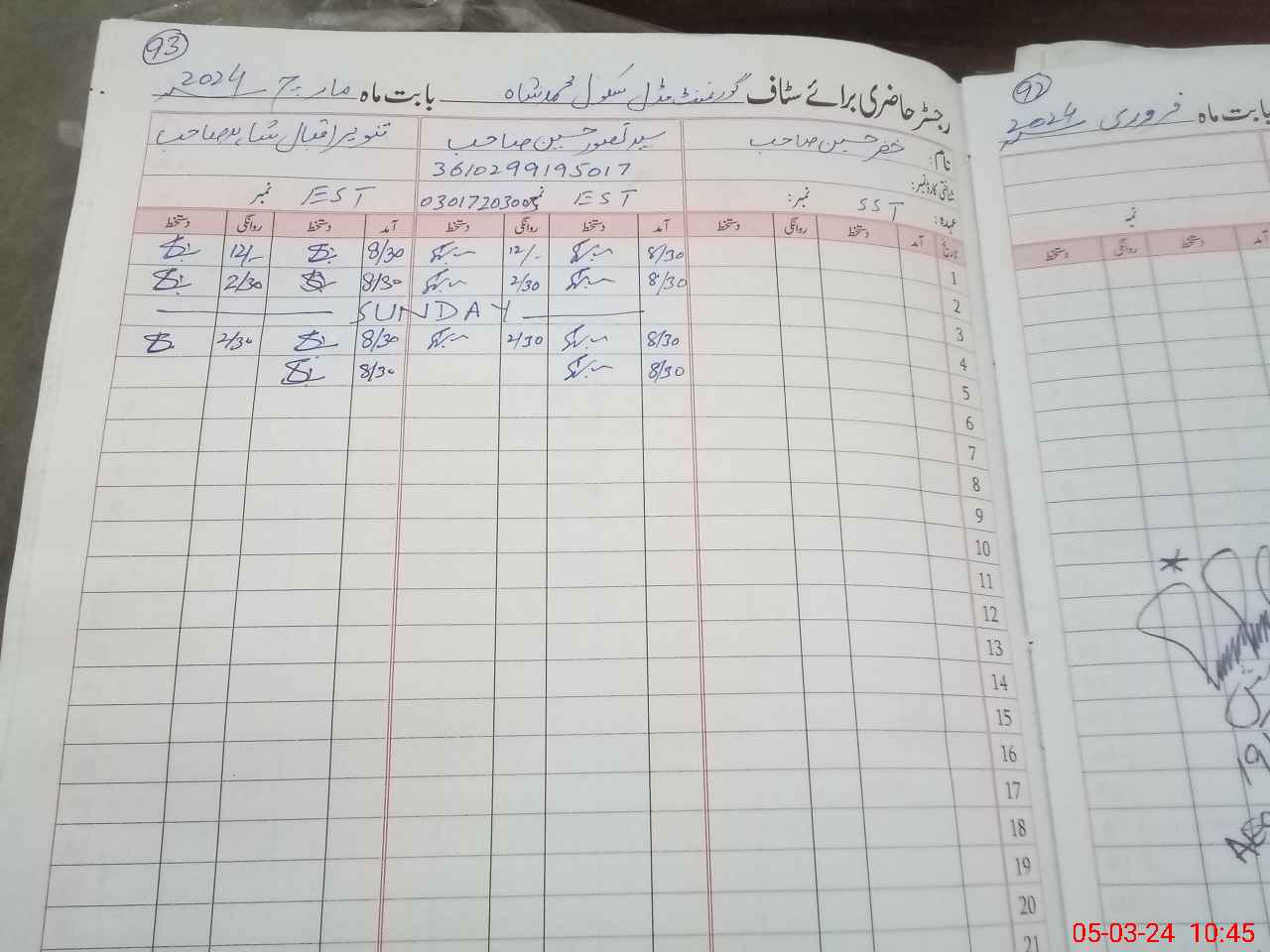 | Name: Ta**** sh**** Designation: (School Headmaster's/Headmistress's) ES.T.(Science) Phone/Cell Number: 03**** |