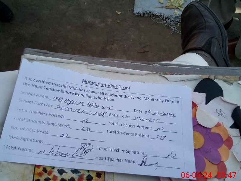 | EMIS Code: 31320235 | Name of School: GPS HAYAT MUHAMMAD PAKHIWAR | |||