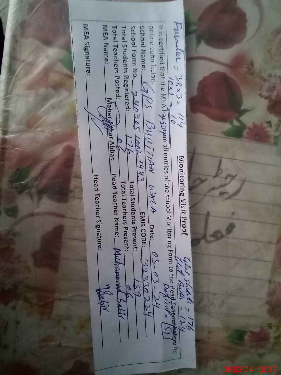 | EMIS Code: 32330224 | Name of School: GPS BHUTTIAN WALA | |||