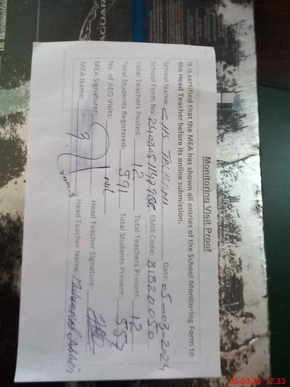 | EMIS Code: 31320050 | Name of School: GHS TALBANI | |||