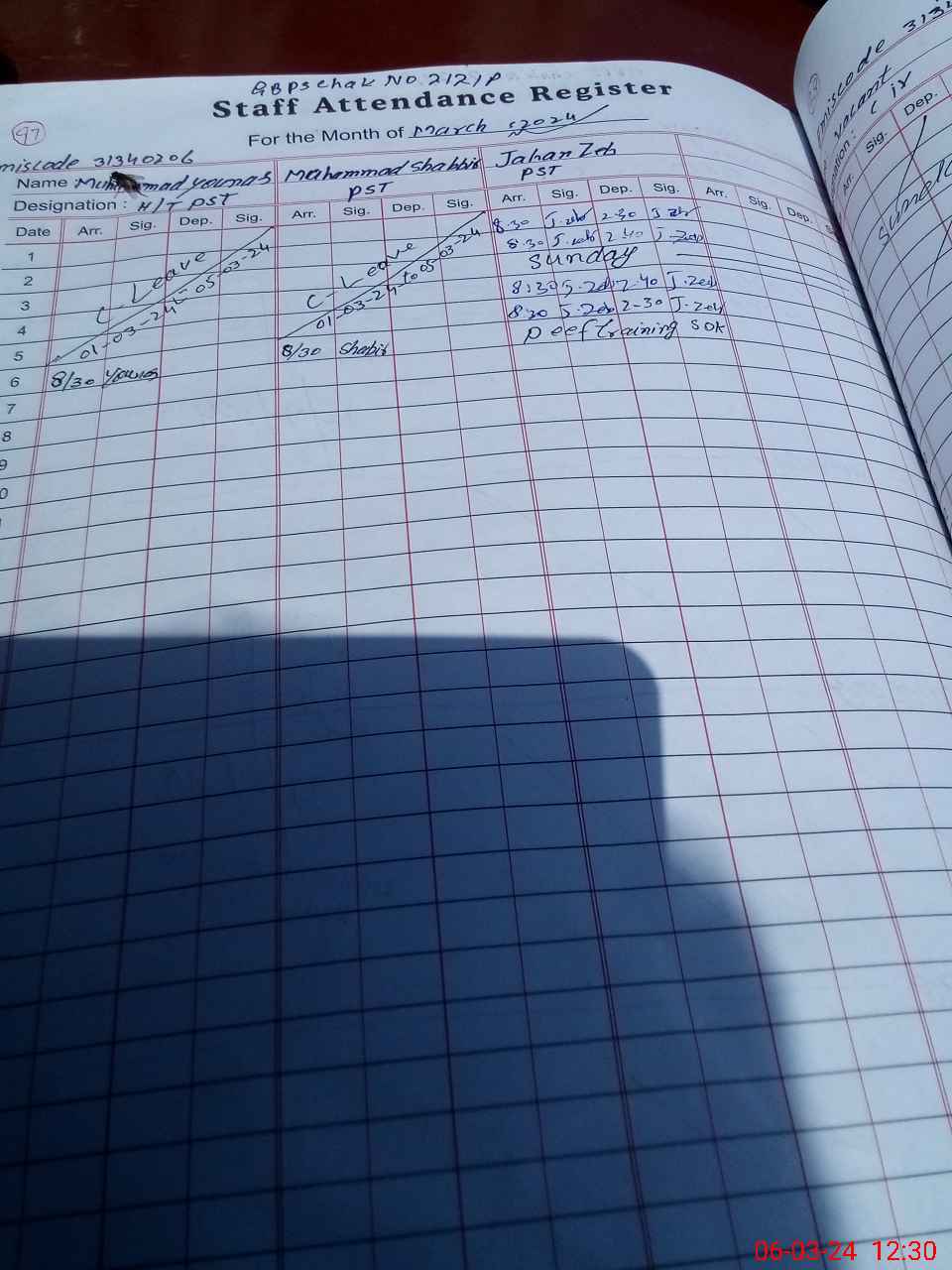 | Name: M.**** Designation: (School Headmaster's/Headmistress's) PST/PTC/JV Phone/Cell Number: 03**** |