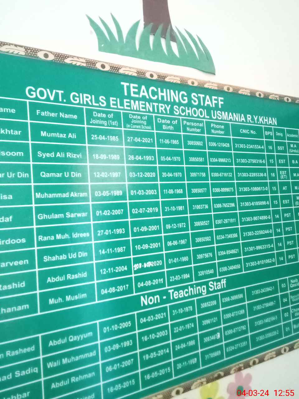 | Name: Zu**** Sa**** Designation: (School Headmaster's/Headmistress's) EST.(general) Phone/Cell Number: 03**** |