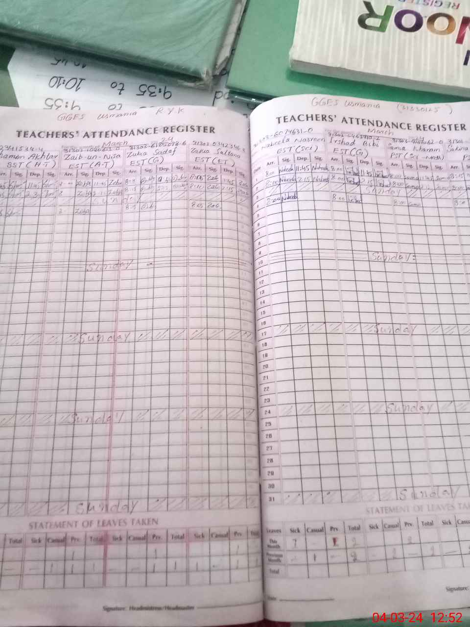 | Leave | Duty | Absent | Maternity | Medical | Ex- Pak |