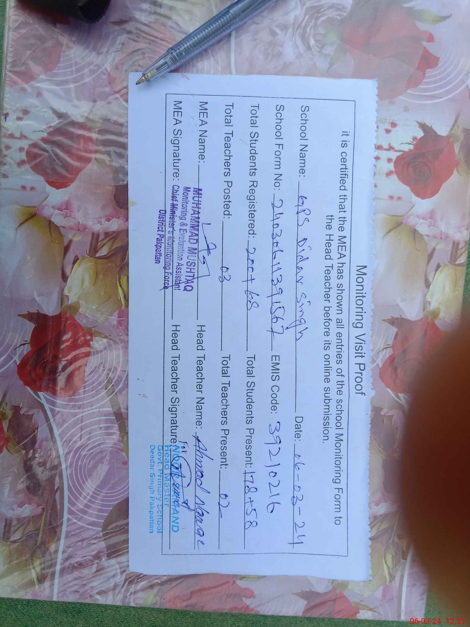 | EMIS Code: 39210216 | Name of School: GPS DIDAR SINGH | |||
