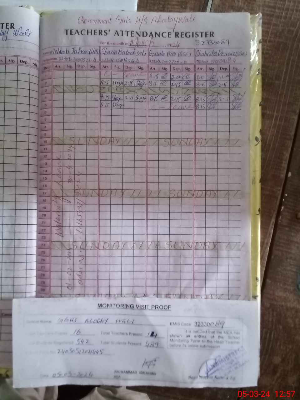 | EMIS Code: 32330089 | Name of School: GGHS ALODAY WALI | |||