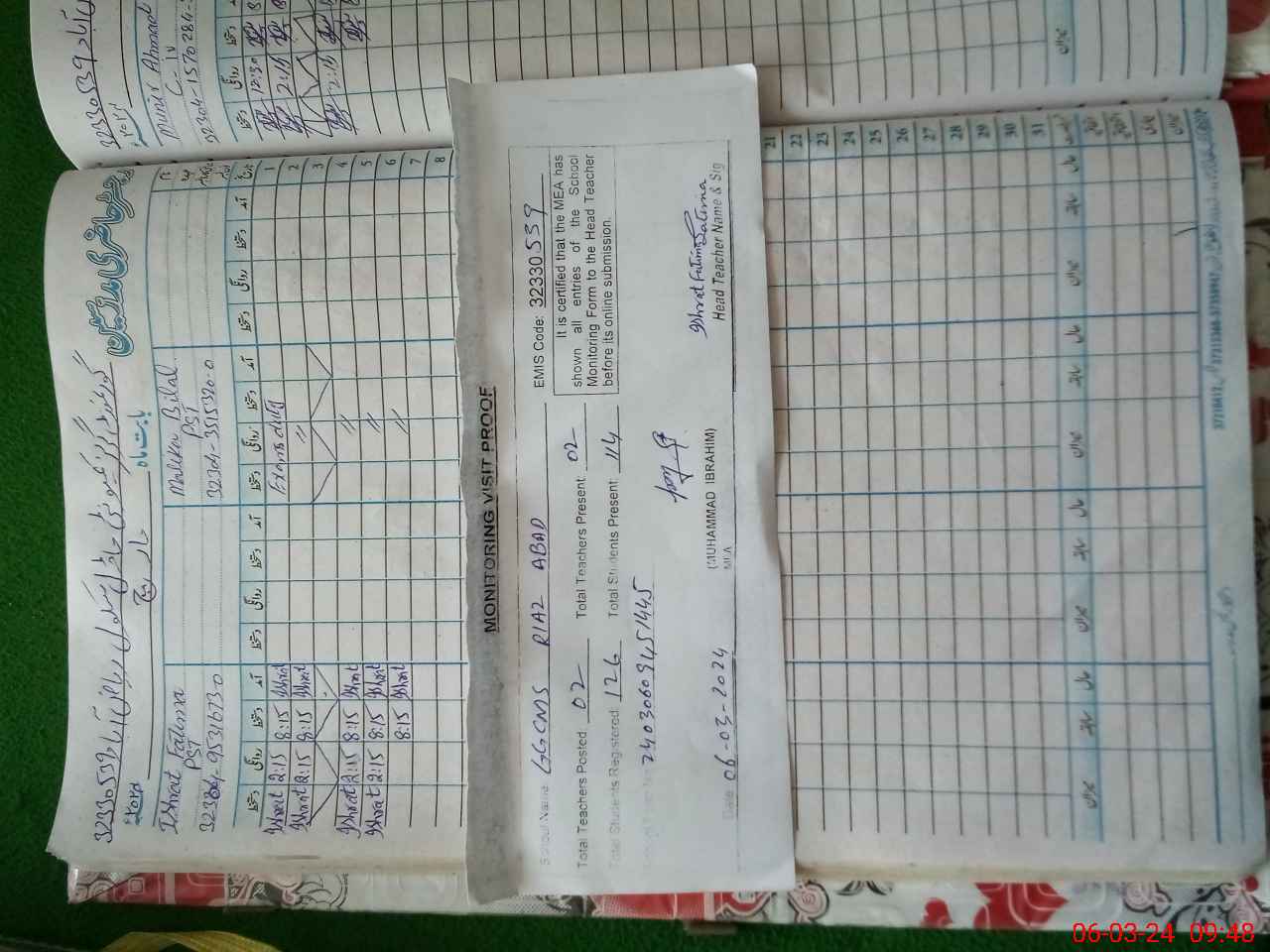 | EMIS Code: 32330539 | Name of School: GGCMS RIAZ ABAD | |||