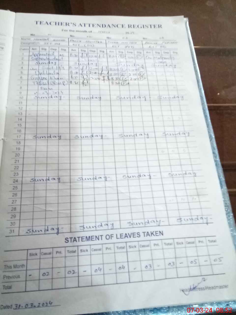 | 37**** | Um**** Ja**** | 1 | 1 | 0 | 0 | 0 | 0 | 0 | 0 | 0 | 0 | 0 | Exam Duty |