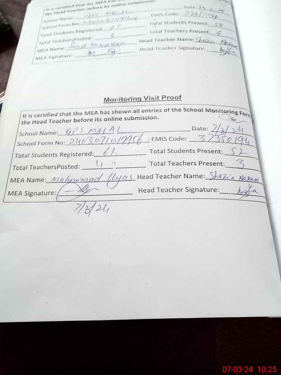| Certified that this School was Inspected by the Undersigned MEA/DMO Today and the Information Stated Above is as Per Record. | |||||