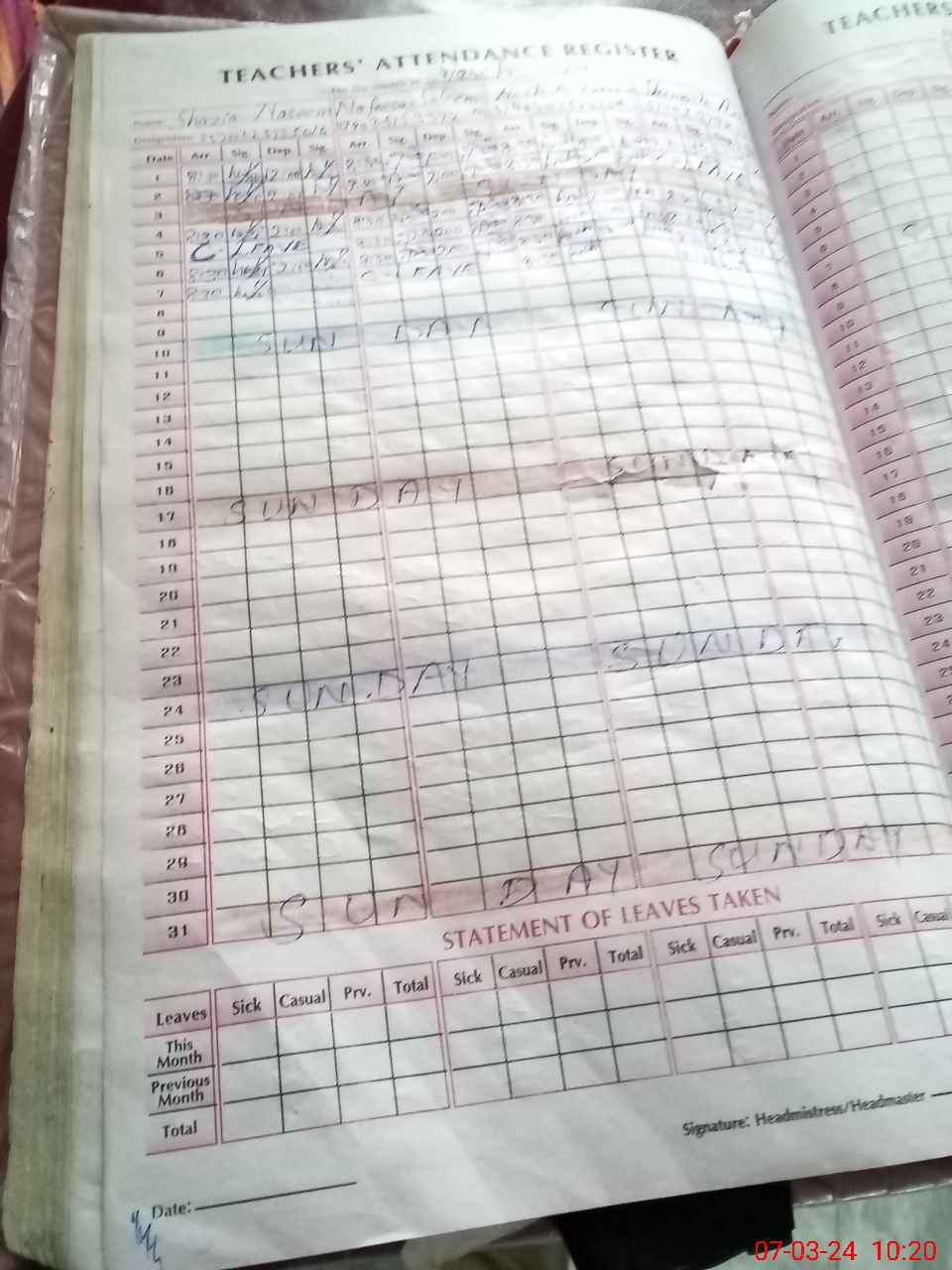 | Name: SH**** NA**** Designation: (School Headmaster's/Headmistress's) PST Phone/Cell Number: 03**** |