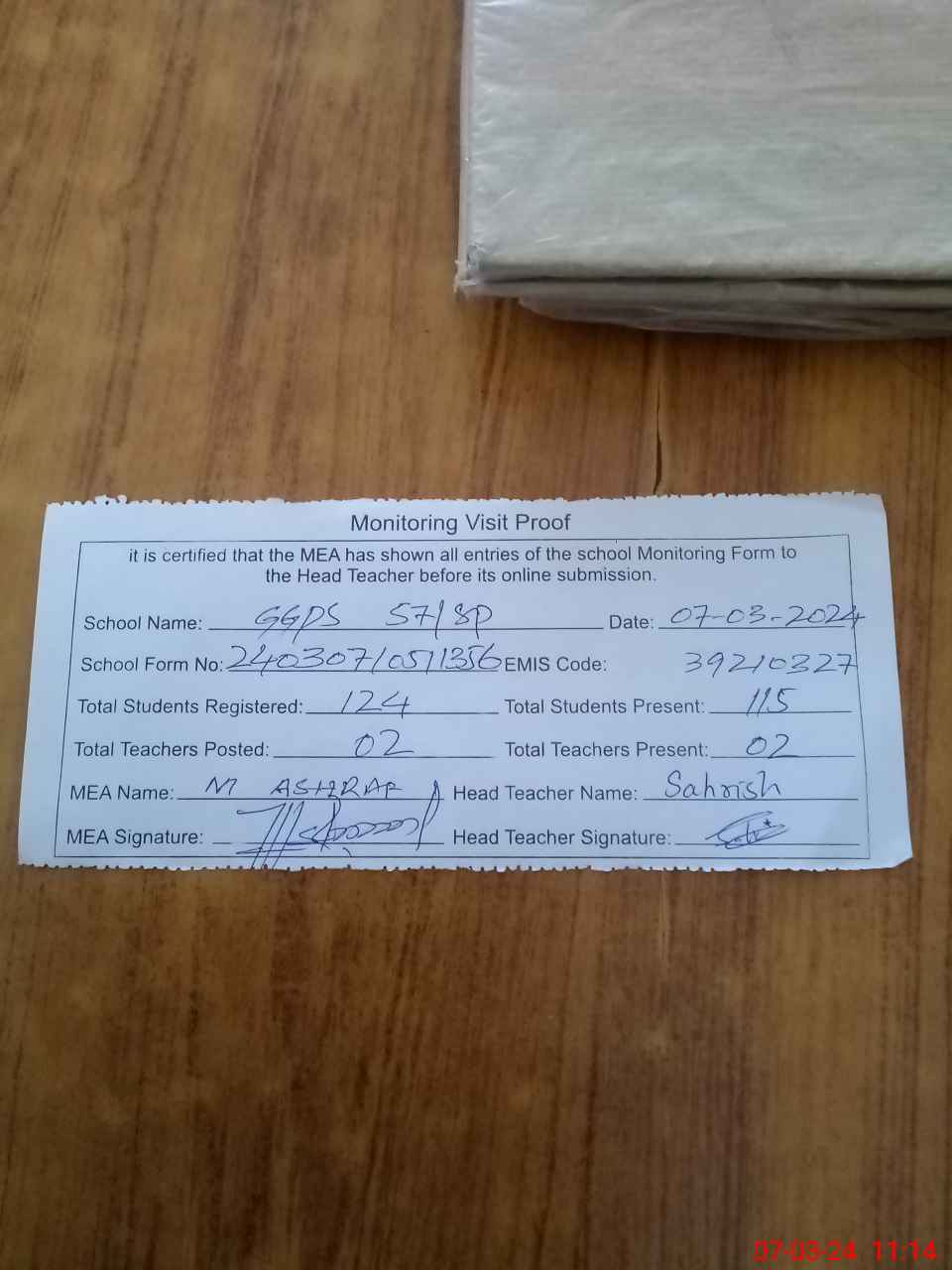 | EMIS Code: 39210327 | Name of School: GGPS 57/SP | |||
