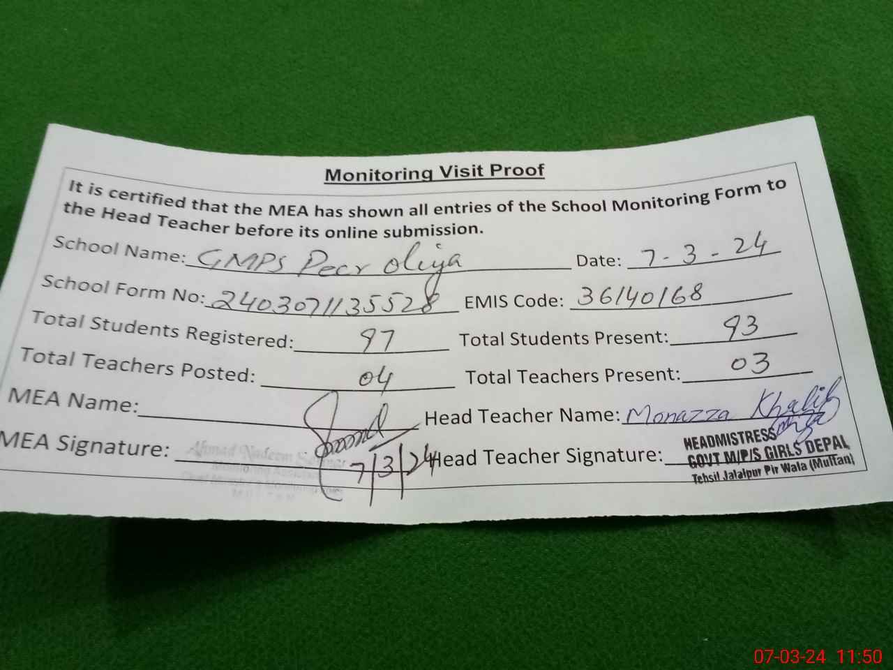 | EMIS Code: 36140168 | Name of School: GMPS PEER OLIYA (DEEPAL) | |||