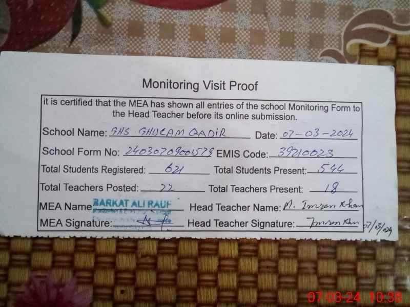 | EMIS Code: 39210023 | Name of School: GHS GHULAM QADIR | |||
