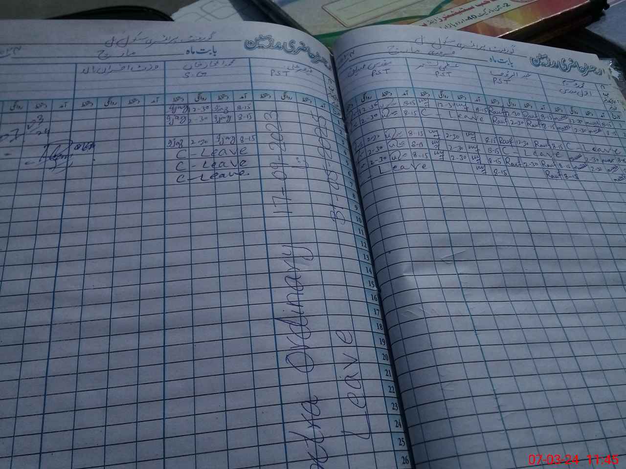| Leave | Duty | Absent | Maternity | Medical | Ex- Pak |