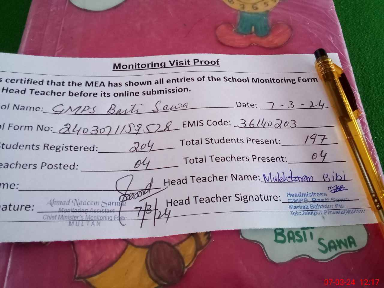 | EMIS Code: 36140203 | Name of School: GMPS BASTI SAWA JALALPUR PIRWALA | |||