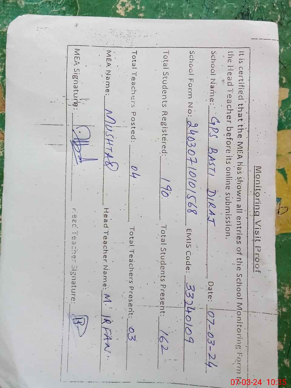| EMIS Code: 33240109 | Name of School: GPS BASTI DIRAJ | |||