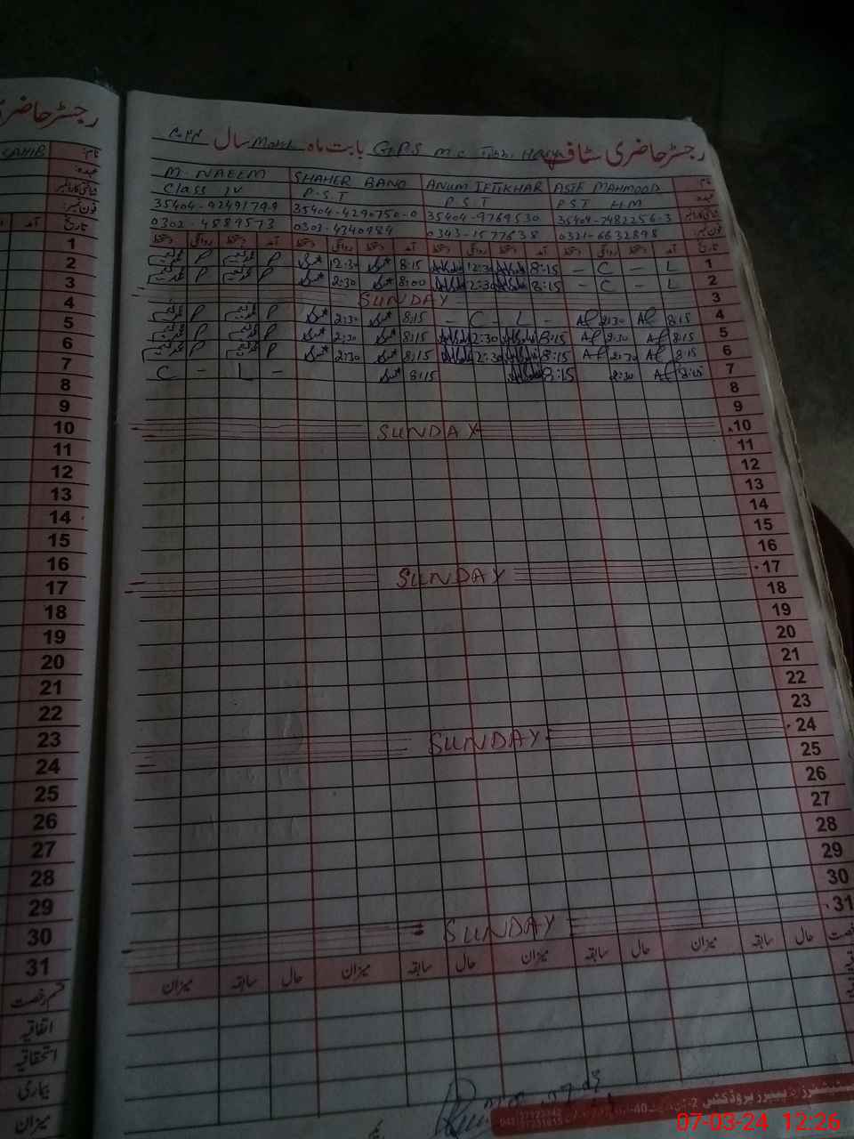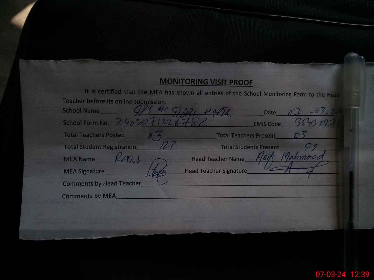 | Name: AS**** ME**** Designation: (School Headmaster's/Headmistress's) PST Phone/Cell Number: 03**** |