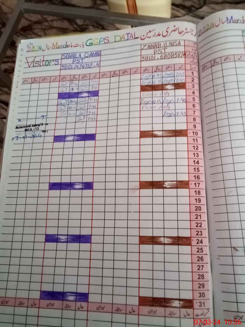 | CNIC | Full Name | Designation | R/C | Absence During Last Calender Month |