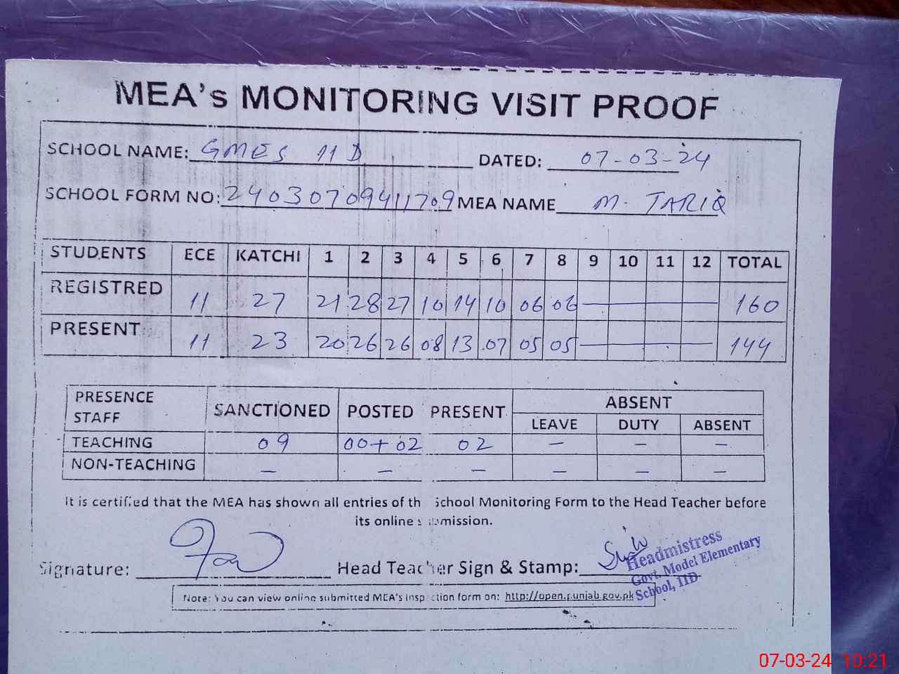 | EMIS Code: 36410480 | Name of School: GMES 11/D, ABDUL HAKIM | |||