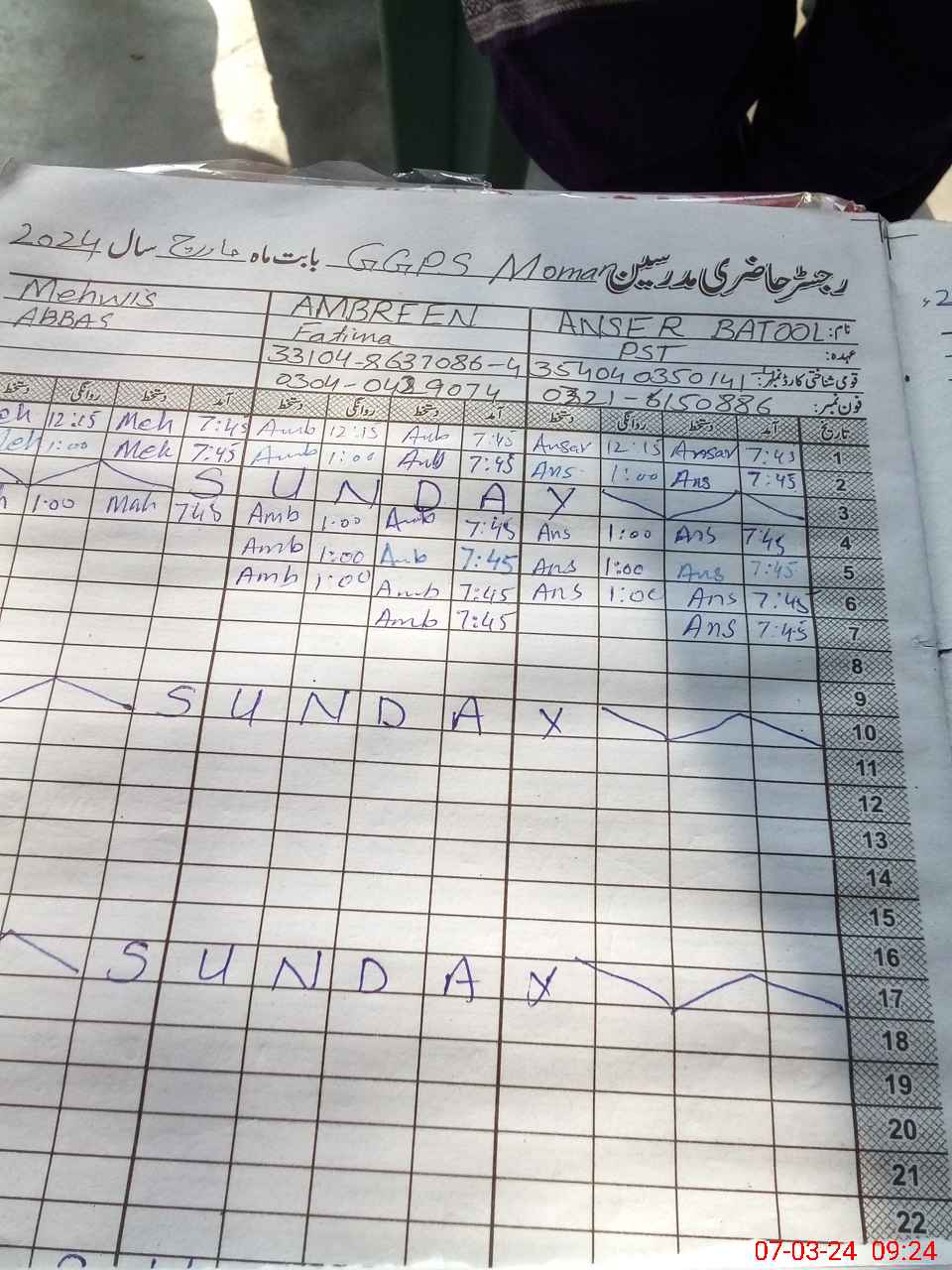 | Name: AN**** BA**** Designation: (School Headmaster's/Headmistress's) PST Phone/Cell Number: 03**** |