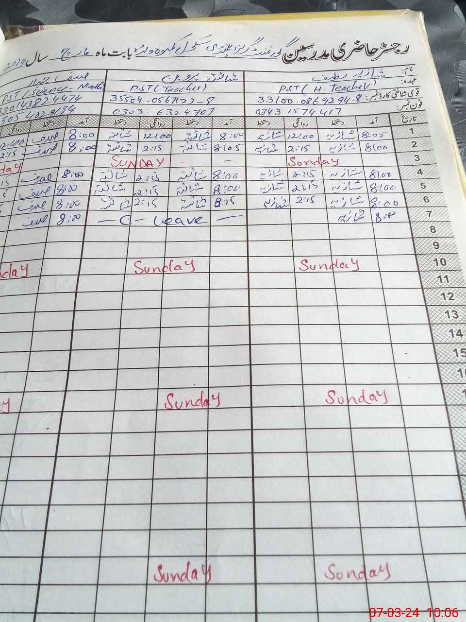 | Name: SH**** LA**** Designation: (School Headmaster's/Headmistress's) PST Phone/Cell Number: 03**** |