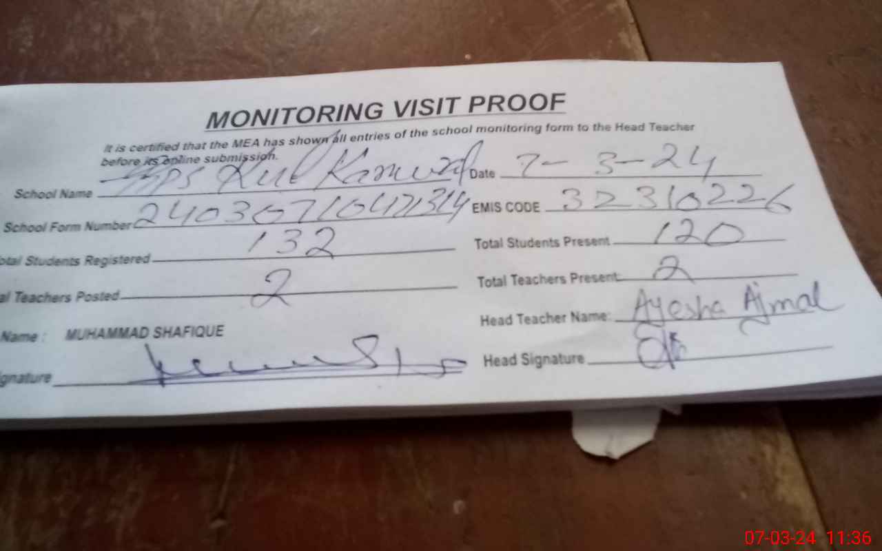 | EMIS Code: 32310226 | Name of School: GGPS KULL KANWAL | |||