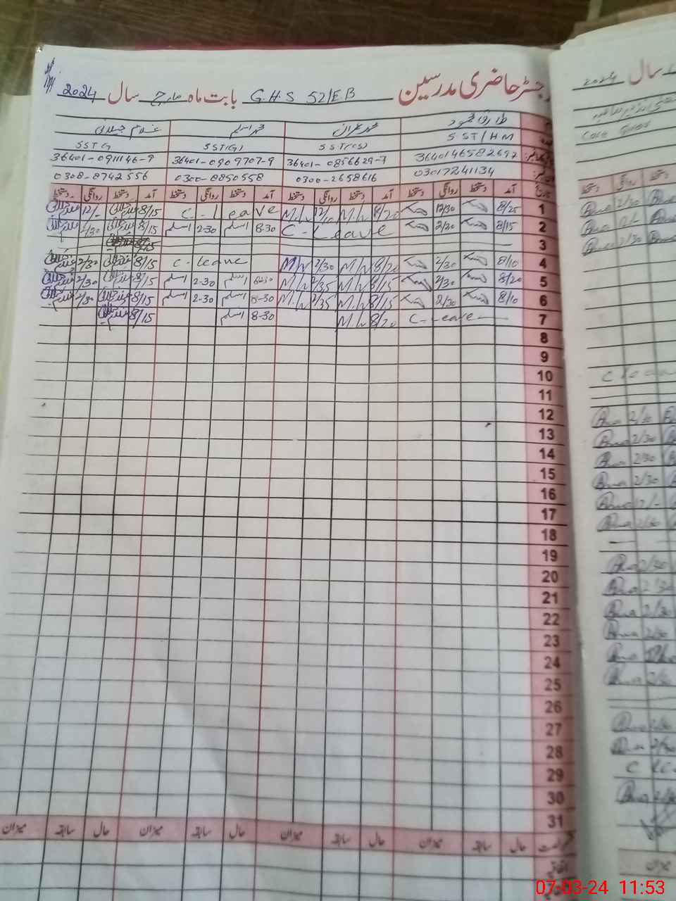 | 36**** | Gh**** Sa**** Kh**** | 1 | 2 | 1 | 0 | 0 | 0 | 0 | 0 | 0 | 2 | Exam Duty | |