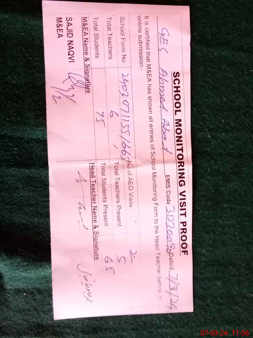 | EMIS Code: 31330090 | Name of School: GES AHMED ABAD | |||