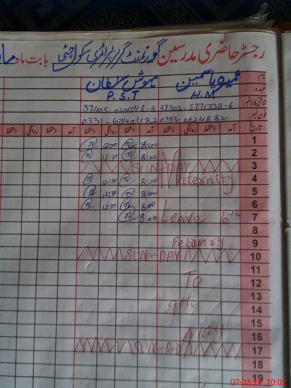 | Name: Um**** Ya**** Designation: (School Headmaster's/Headmistress's) Headmaster Phone/Cell Number: 03**** |