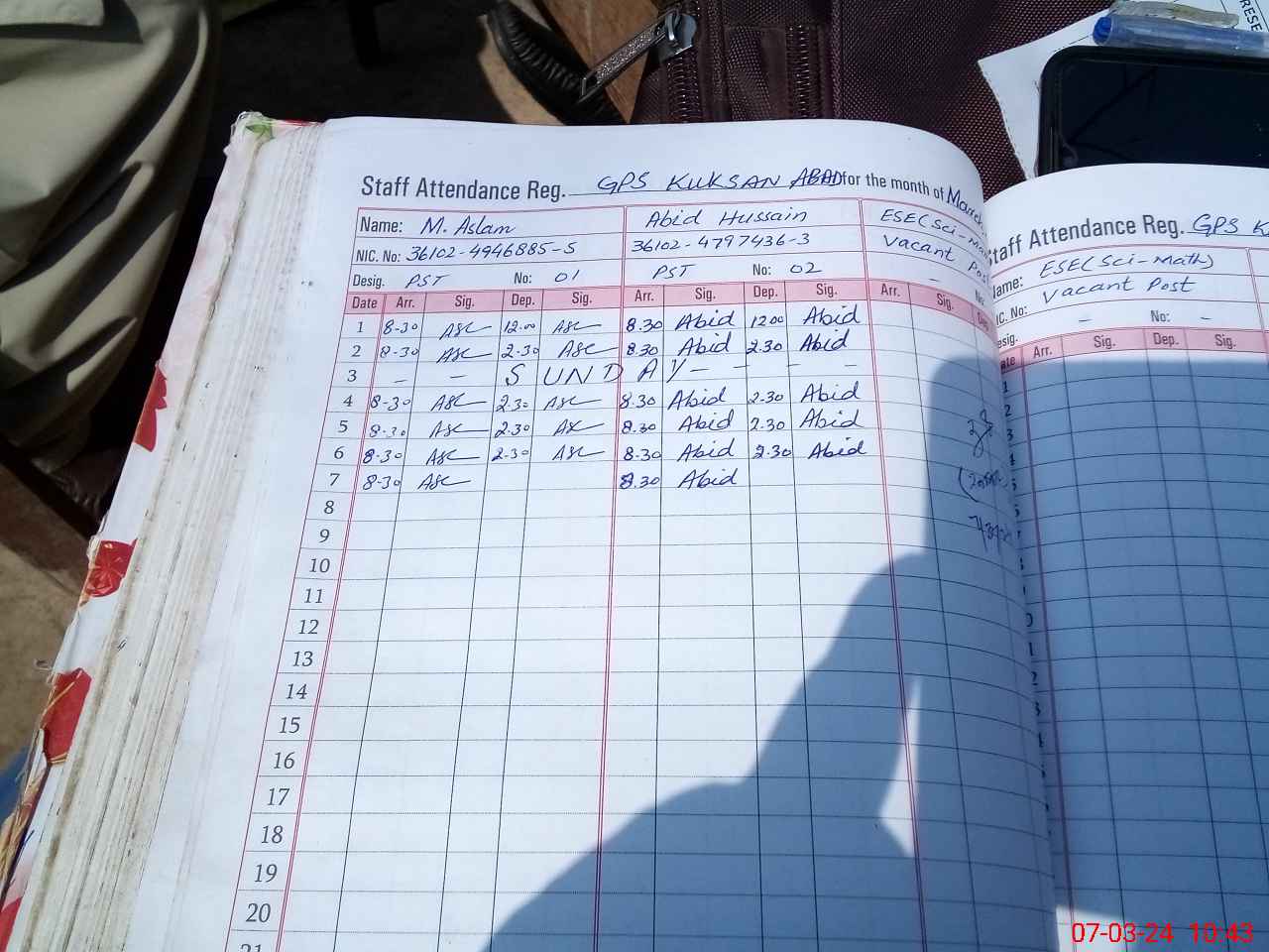 | Name: MAS**** Designation: (School Headmaster's/Headmistress's) PST/PTC/JV Phone/Cell Number: 03**** |