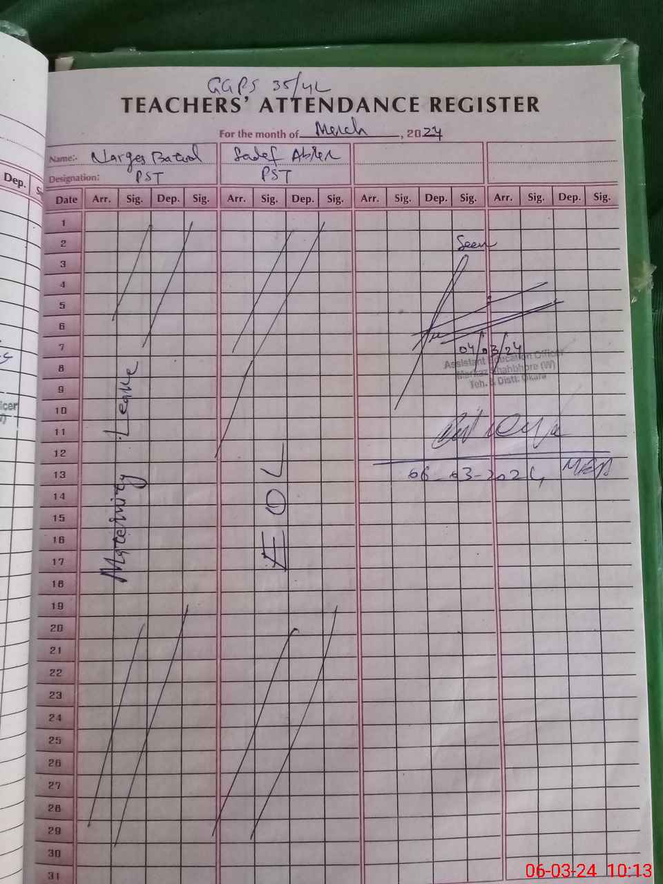 | 35**** | Sa**** Ab**** | PST | Regular | 31 | 0 | 0 | 31 | 0 | 0 | 0 | 0 | 0 | Maternity |