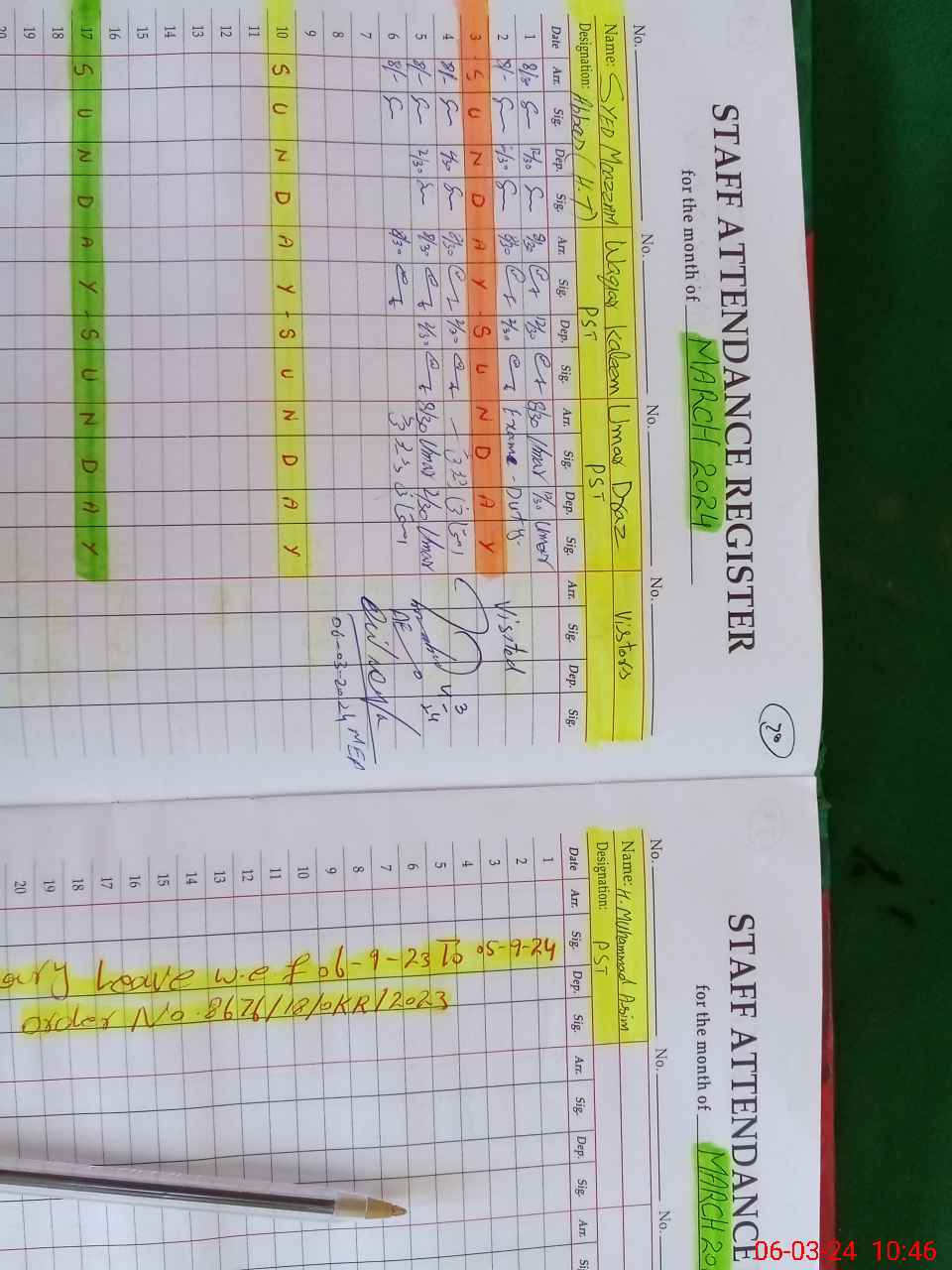 | 35**** | Um**** Dr**** | PST | Regular | 0 | 0 | 0 | 0 | 0 | 0 | 0 | 0 | 0 | Exam Duty |