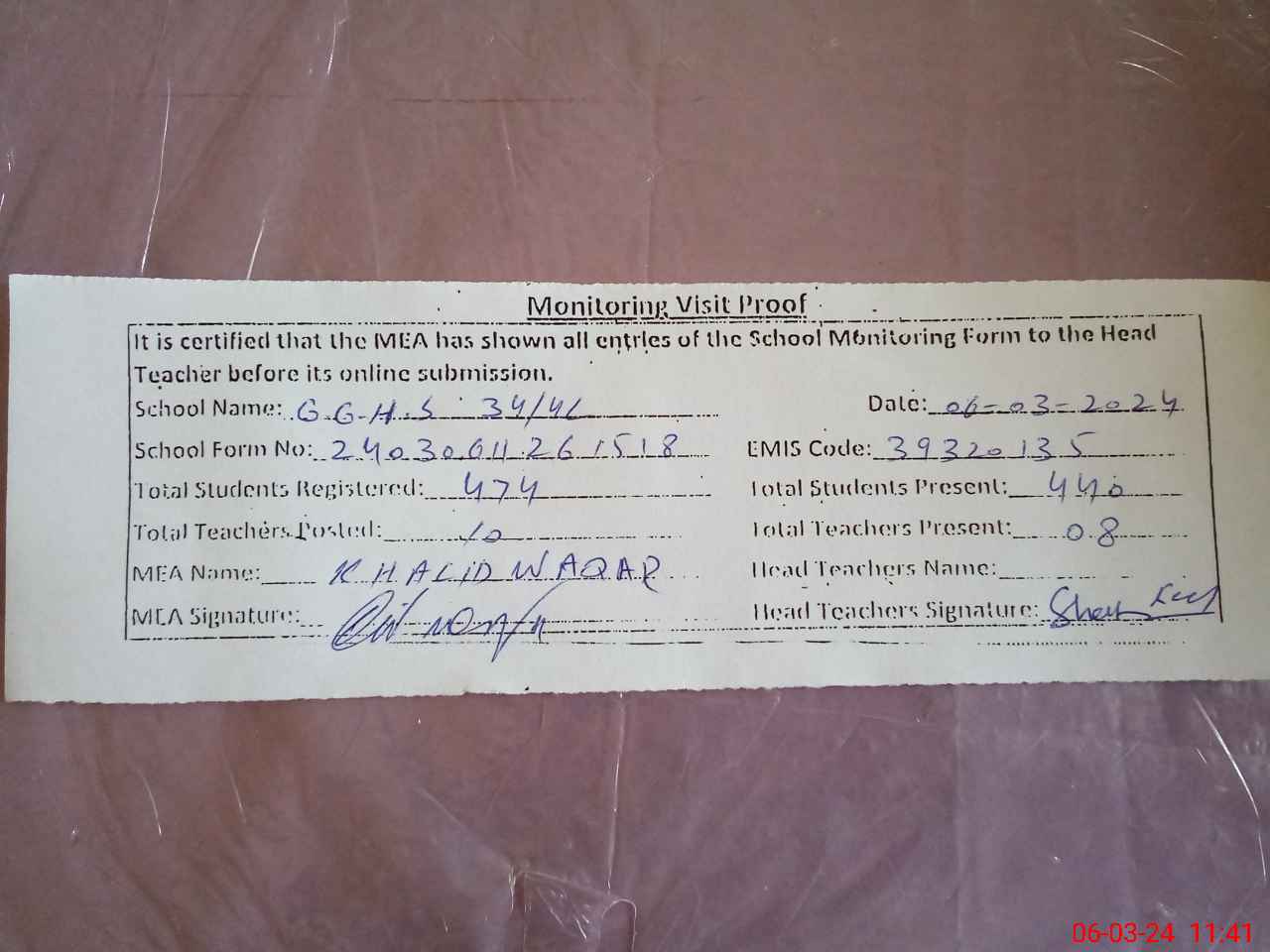 | EMIS Code: 39320135 | Name of School: GGHS CHAK NO.34/4-L | |||
