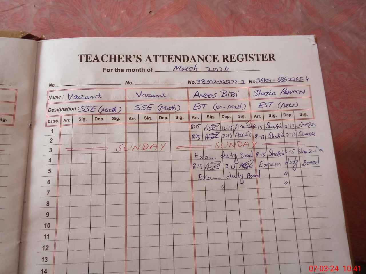 | 36**** | Sh**** Pe**** | Regular | 1 | 6 | 0 | 0 | 0 | 0 | 0 | 0 | 1 | Exam Duty | |
