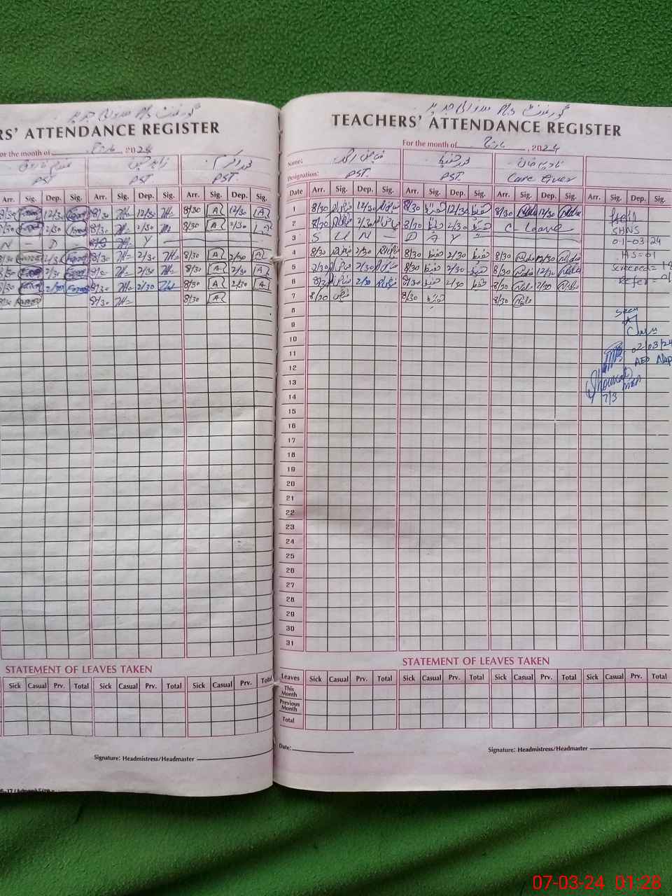 | Name: FI**** AH**** Designation: (School Headmaster's/Headmistress's) PST Phone/Cell Number: 03**** |
