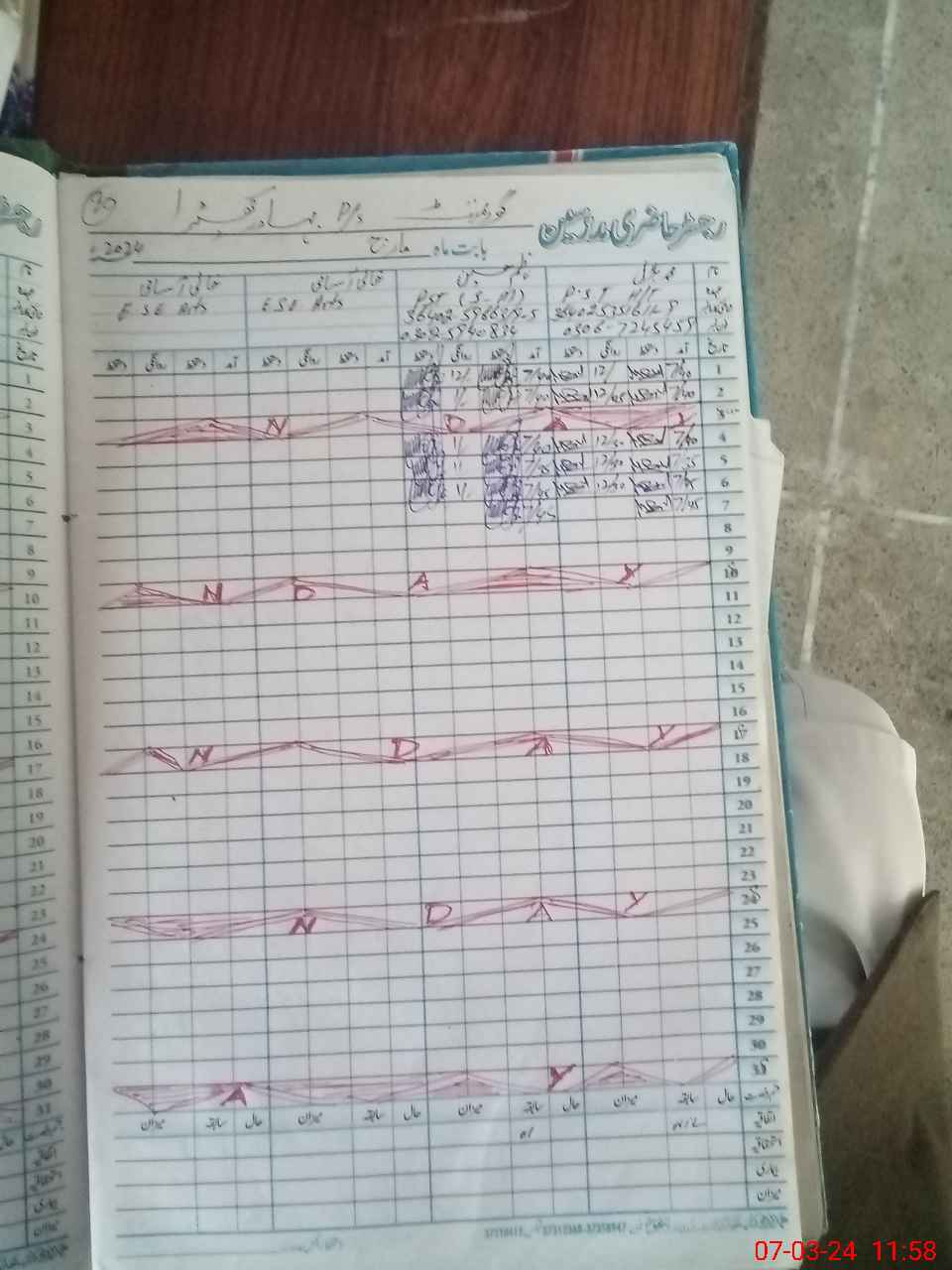 | CNIC | Full Name | Designation | R/C | Absence during last cal. month |
