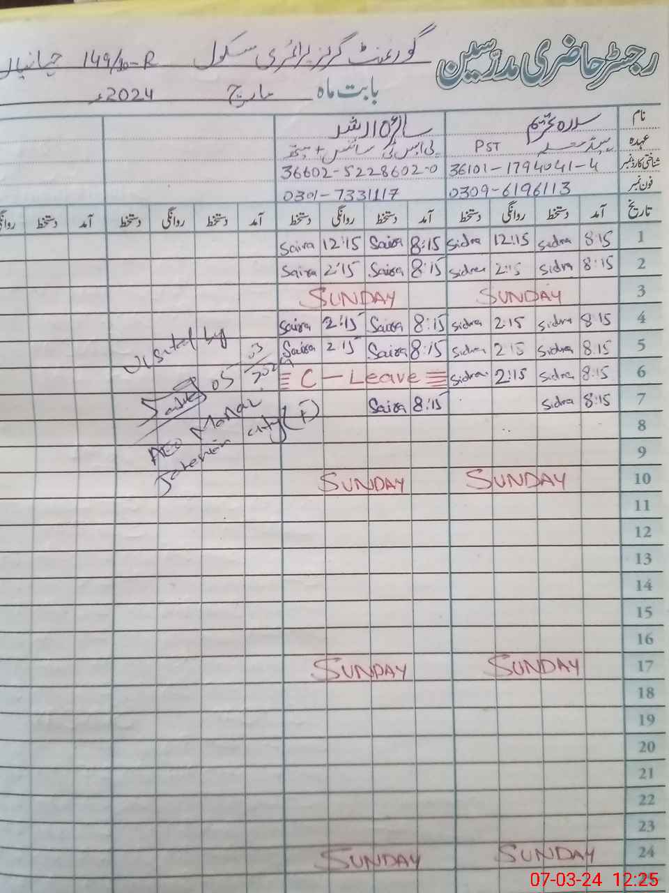 | Name: Qa**** Unni**** Sa**** Designation: (School Headmaster's/Headmistress's) PST Phone/Cell Number: 03**** |