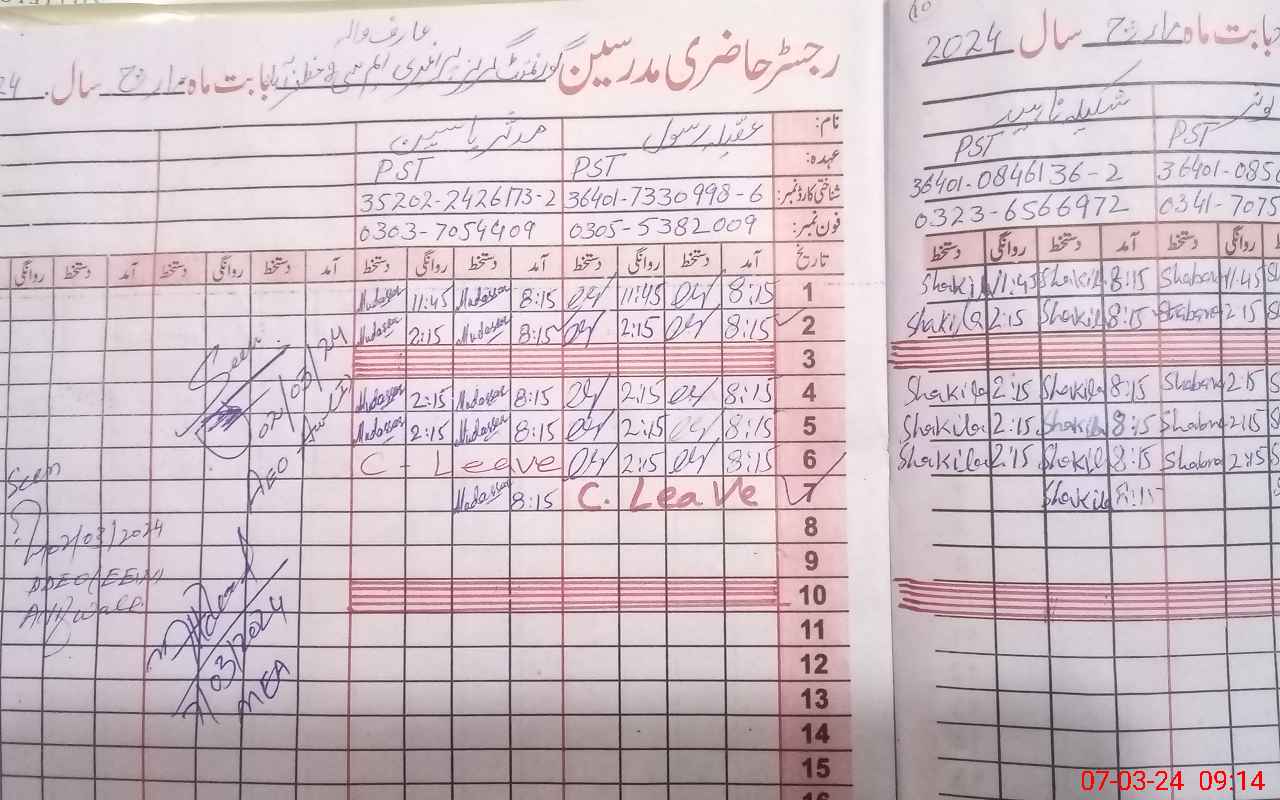 | Name: NA**** SH**** Designation: (School Headmaster's/Headmistress's) PST Phone/Cell Number: 03**** |