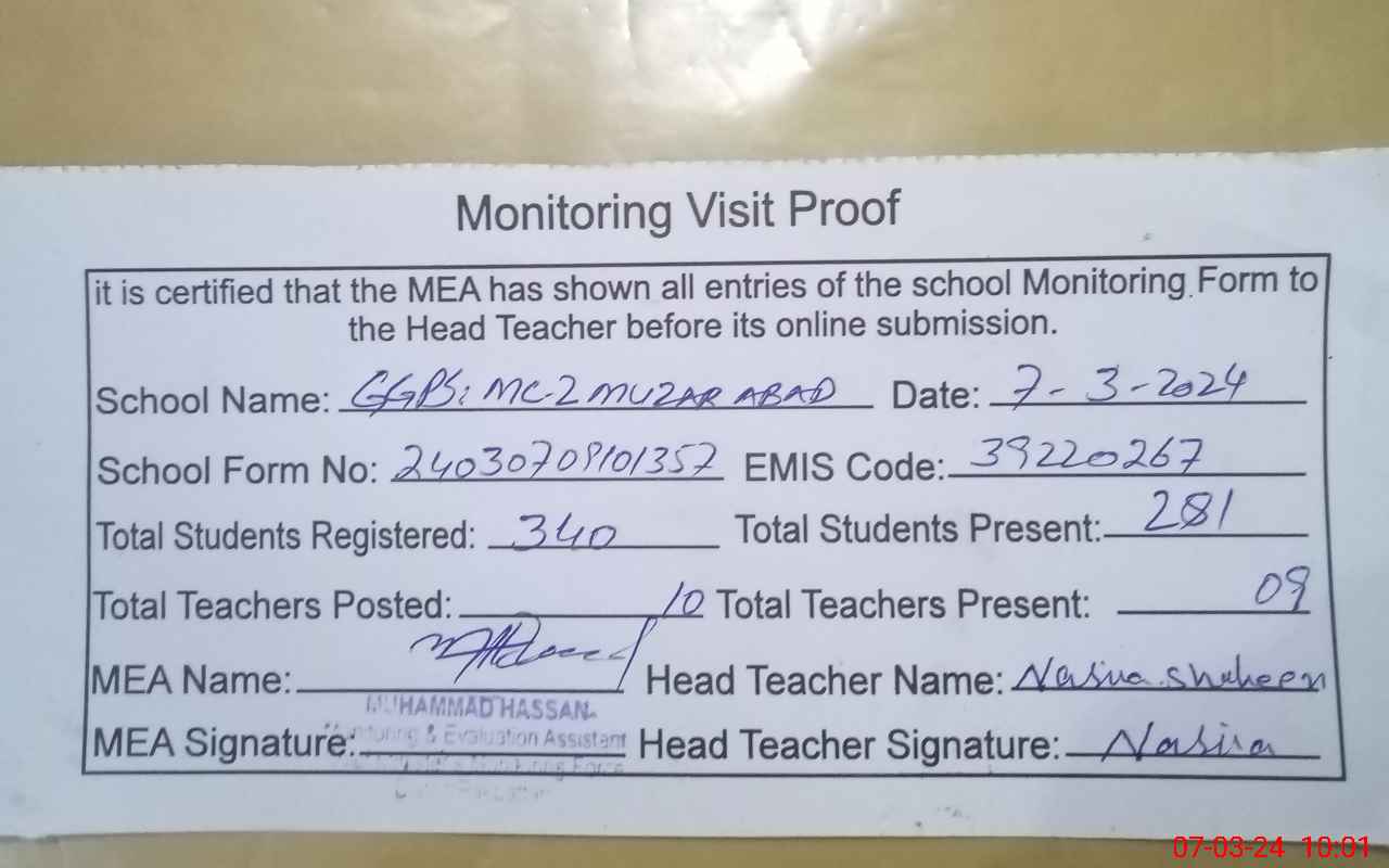 | EMIS Code: 39220267 | Name of School: GGPS MC NO. 2 MUZAFAR ABAD | |||