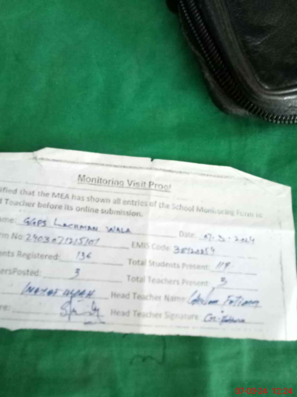| Attendance Register | Head Teacher | MEA with School | Visit Proof |