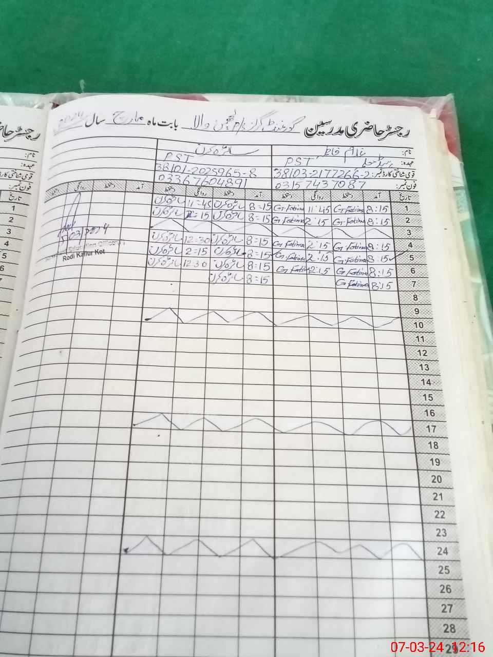 | CNIC | Full Name | Designation | R/C | Absence During Last Calender Month |