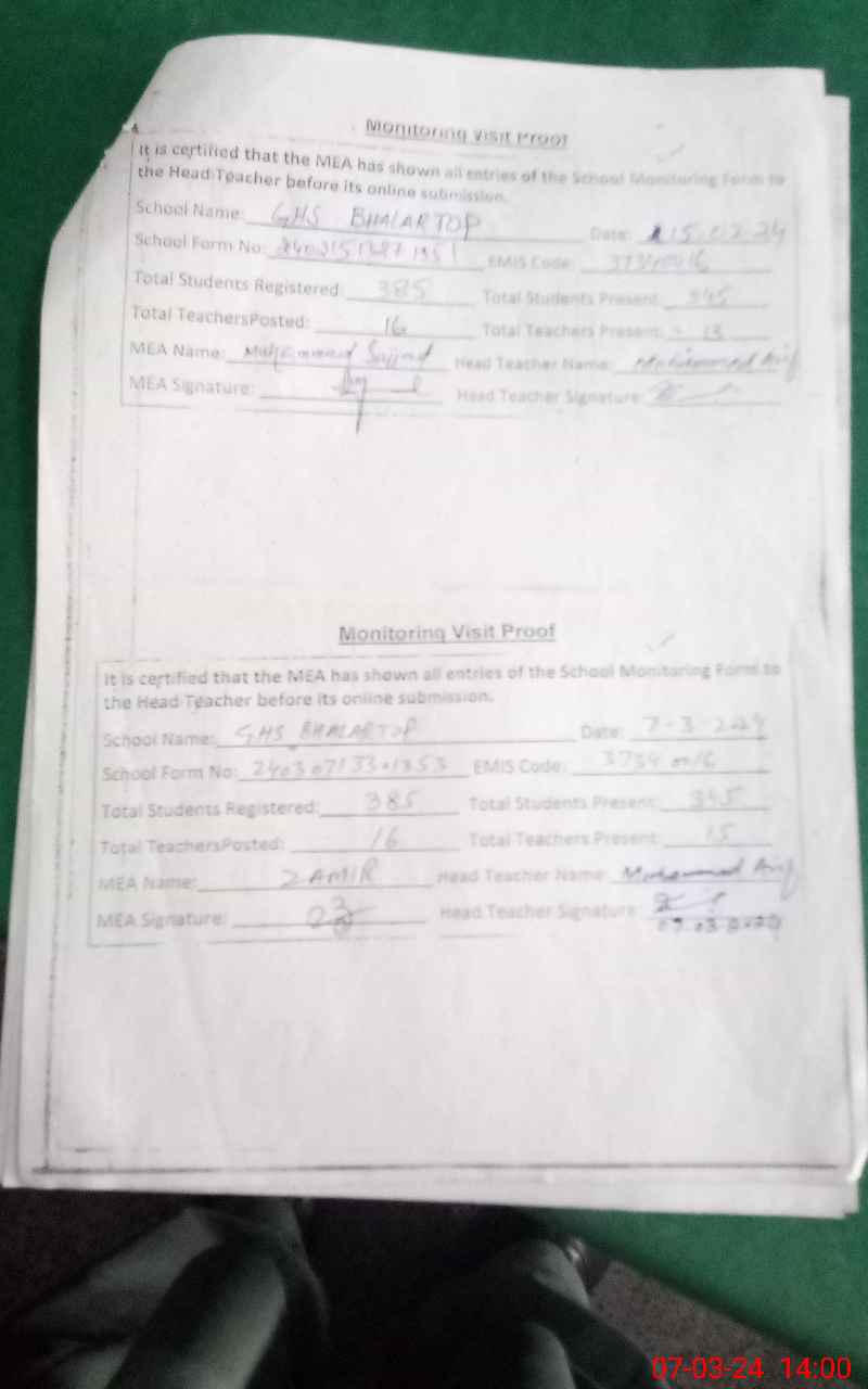 | EMIS Code: 37340016 | Name of School: GHS BHALLARTOP | |||