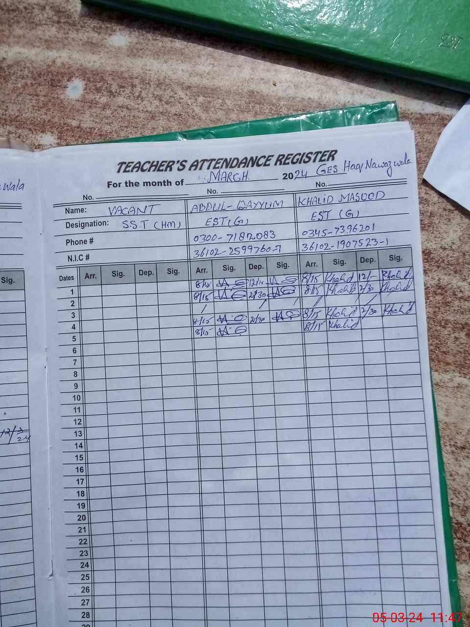 | Name: Ab**** Qa**** Designation: (School Headmaster's/Headmistress's) Est Phone/Cell Number: 03**** |