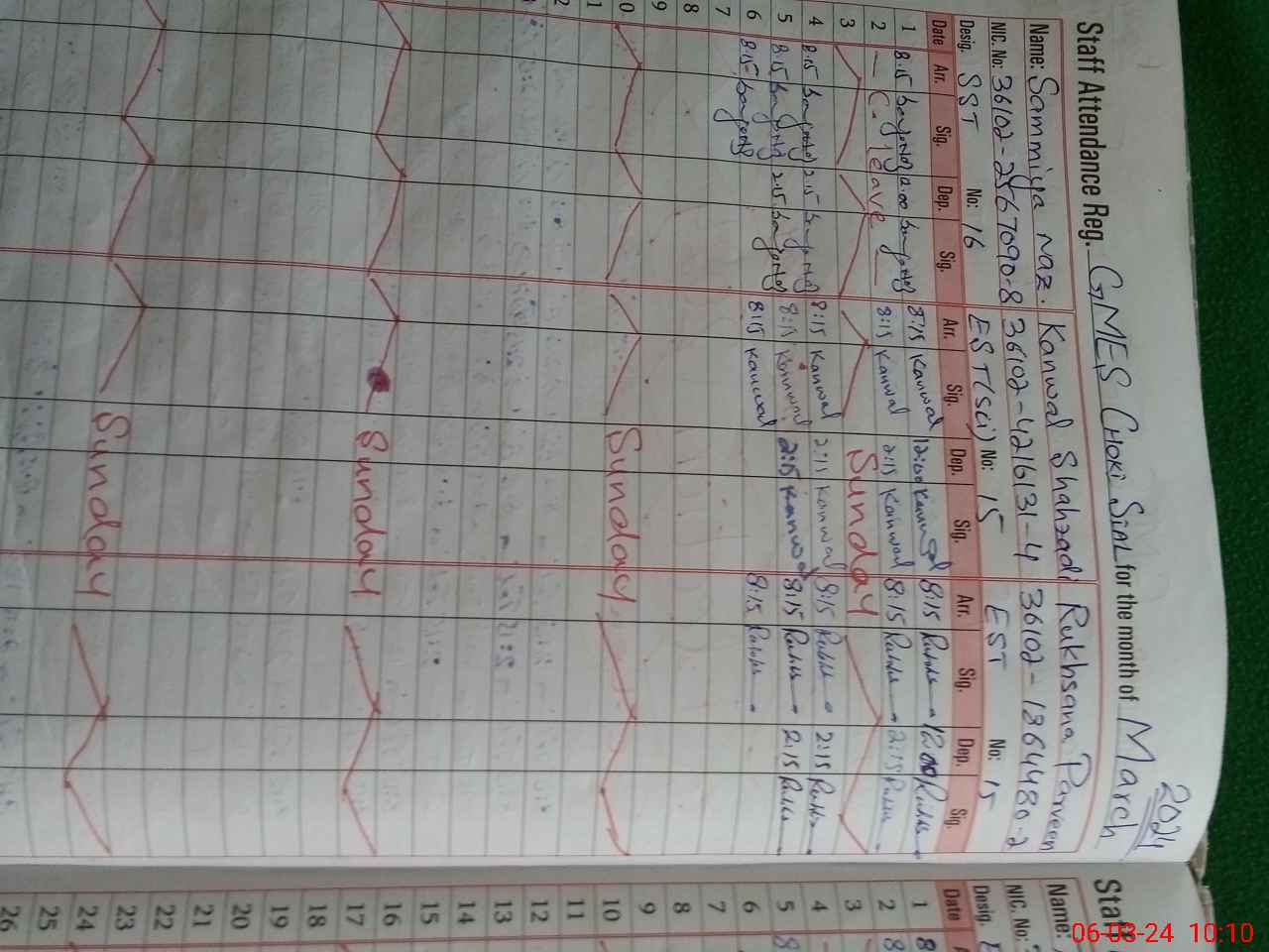 | 36**** | Ru**** Na**** | 1 | 1 | 0 | 0 | 0 | 0 | 0 | 0 | 0 | 0 | 0 | Exam Duty |