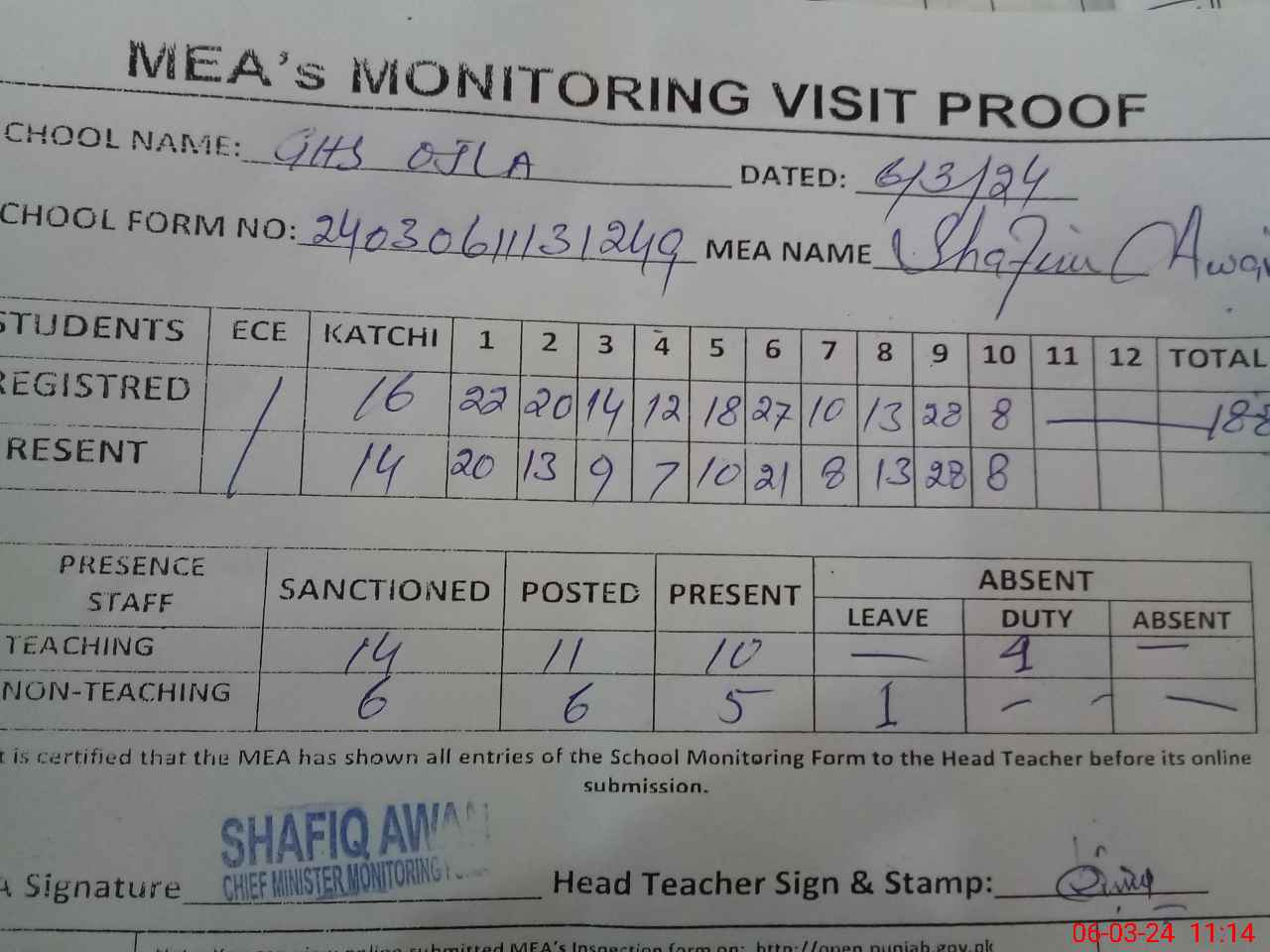 | EMIS Code: 36410088 | Name of School: GHS OJLA P/O SARDAR PUR | |||