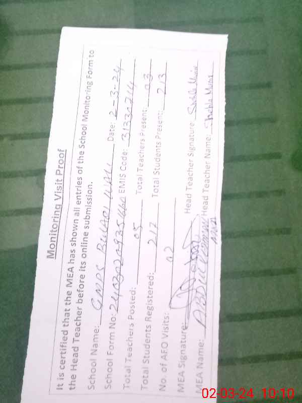 | EMIS Code: 31330714 | Name of School: GMPS BULAQI WALI | |||