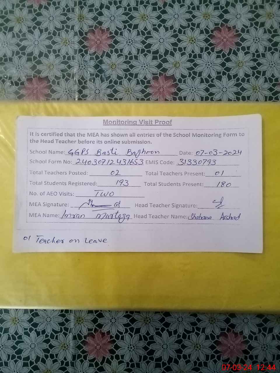 | EMIS Code: 31330793 | Name of School: GGPS BAGHOON | |||