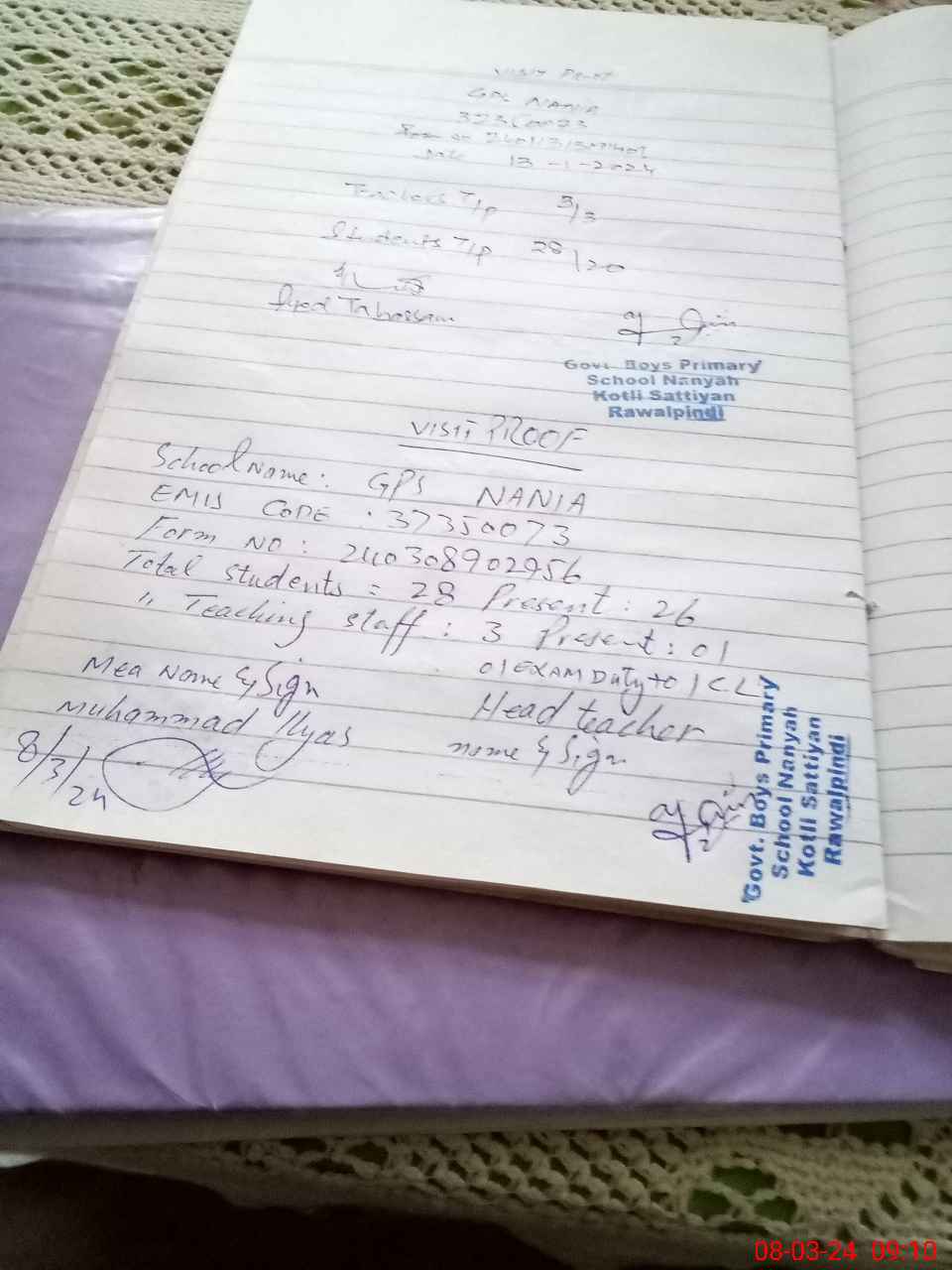 | EMIS Code: 37350073 | Name of School: GPS NANIA | |||