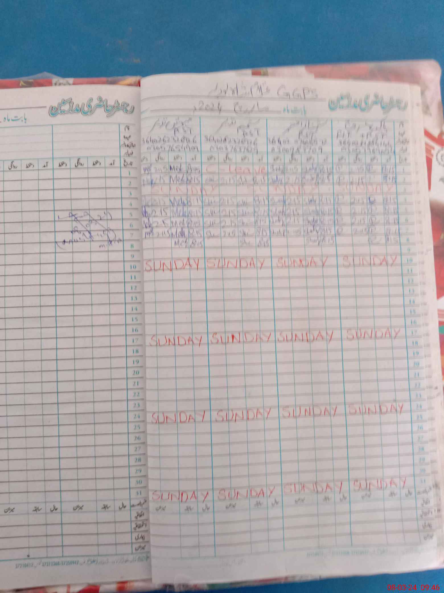 | CNIC | Full Name | Designation | R/C | Absence During Last Calender Month |