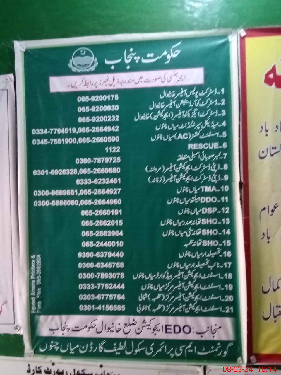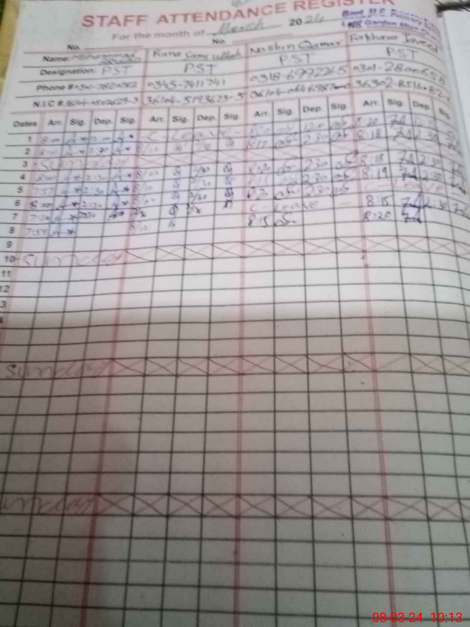 | Name: M.As**** Designation: (School Headmaster's/Headmistress's) PST Phone/Cell Number: 03**** |