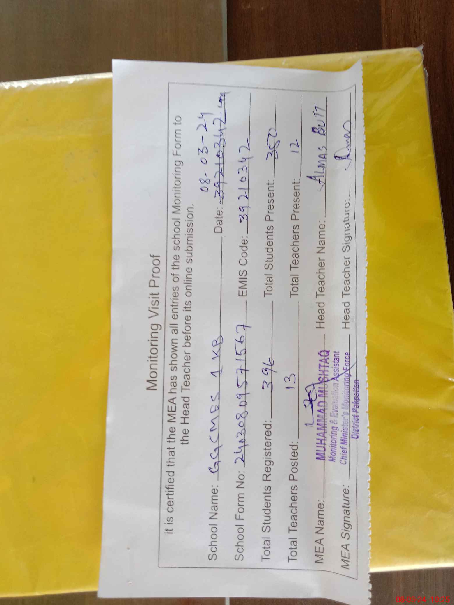 | EMIS Code: 39210342 | Name of School: GGCMES 1 KB PAKPATTAN | |||